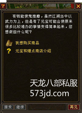 这个界面显示了元宝商品和价格,在背包(alt+A)里可以查看自己当前拥有的元宝数量。左键点击即可购买。