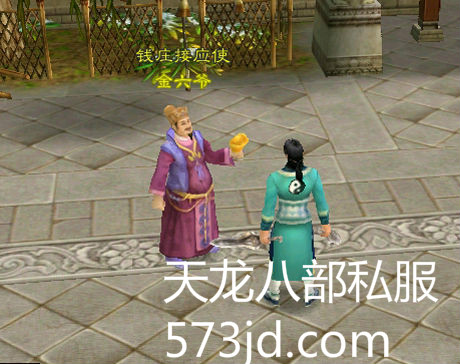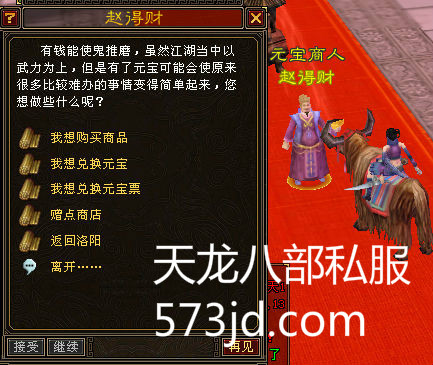 选择“前往钱庄总部”后来到钱庄。与钱庄中任意一个元宝商人对话,如下图所示