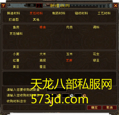 收购材料时,店主可以制定每种材料单个的价格及数量。制定完成后,店主需要支付所有收购材料需要的资金。如店主身上资金不足,则提示“你没有足够的金钱收购材料”。
