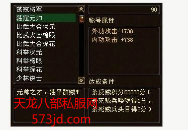 1:平反称号----就是靠刷反贼副本获得的积分来兑换的称号,一只士兵1分,一只头目5分,一次副本总计35分。最高级称号为荡寇元帅,90阅历值